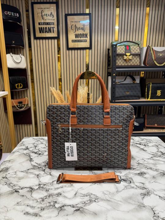 Goyard Premium Quality Laptop Bag In Goyardian Canvas With Strap (GY2050-5 Yellow)