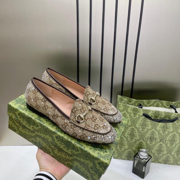 Gucci_Womens_Jordaan_Loafers_Wid_OG_Box_&_Carry_Bag_Khakhi_Crystal