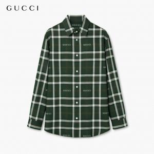 Gucc i Green Premium Checks Allover Logo Shirt With custom Branded Button Tagging And Brand Packing 3814