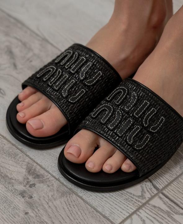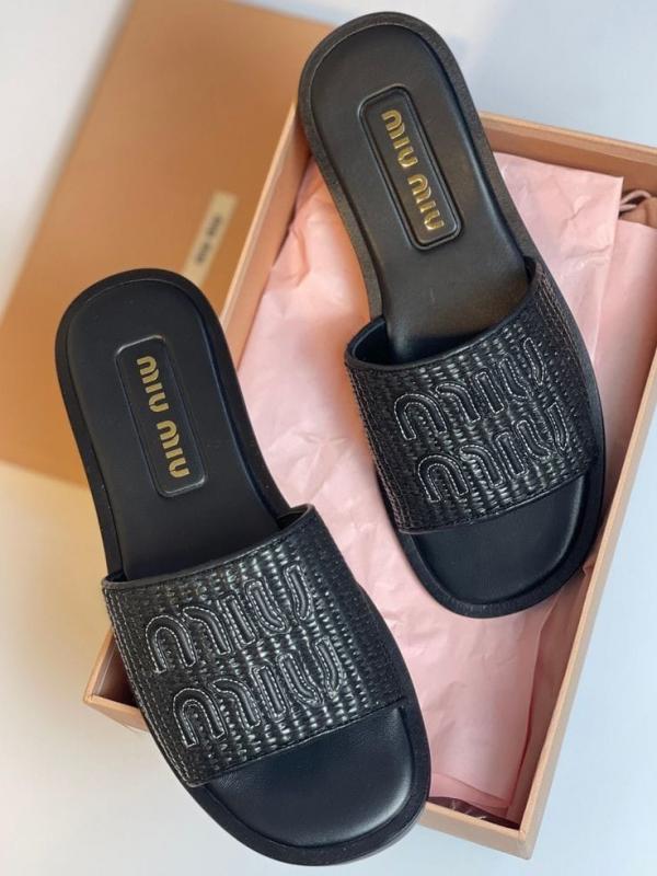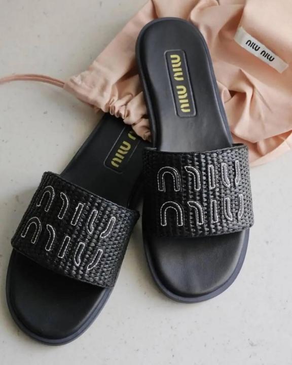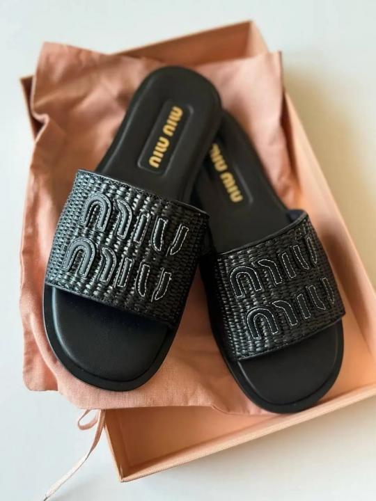 Miu Miu Raffia Effect Black Slides For Her With Original Box And Dustcover