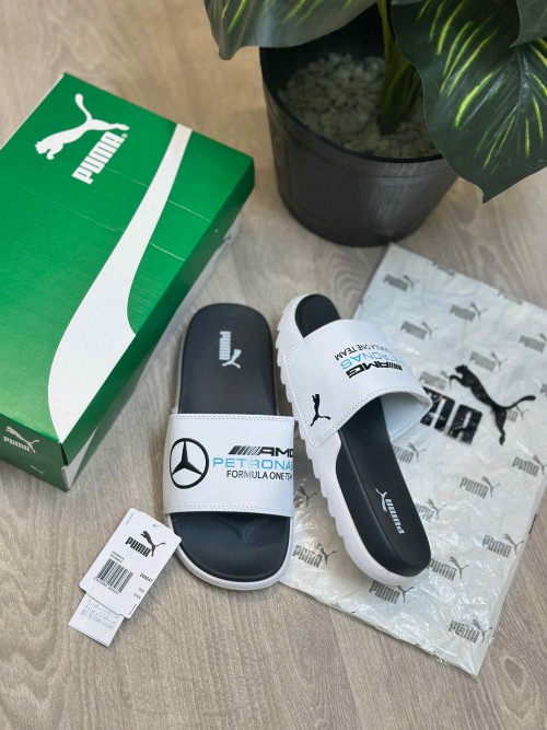 Pum.a Mercedes AMG Petronas Soft Comfort Premium White Black Slides